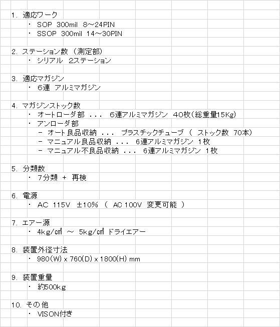 | 品名・仕様 | テストハンドラ | ||